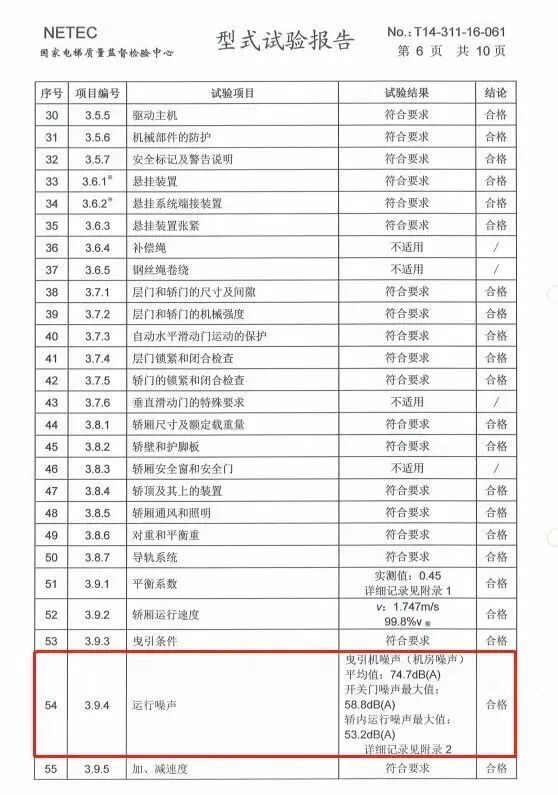 因此,在升降机恒定运转情况下,住户在室内基本听不到升降机运转声音以西奥升降机为例,国家升降机质量监督检验中心出具的特种设备型式实验报告显示,装设升降机的相关运转噪音检测值均符合标准规定。