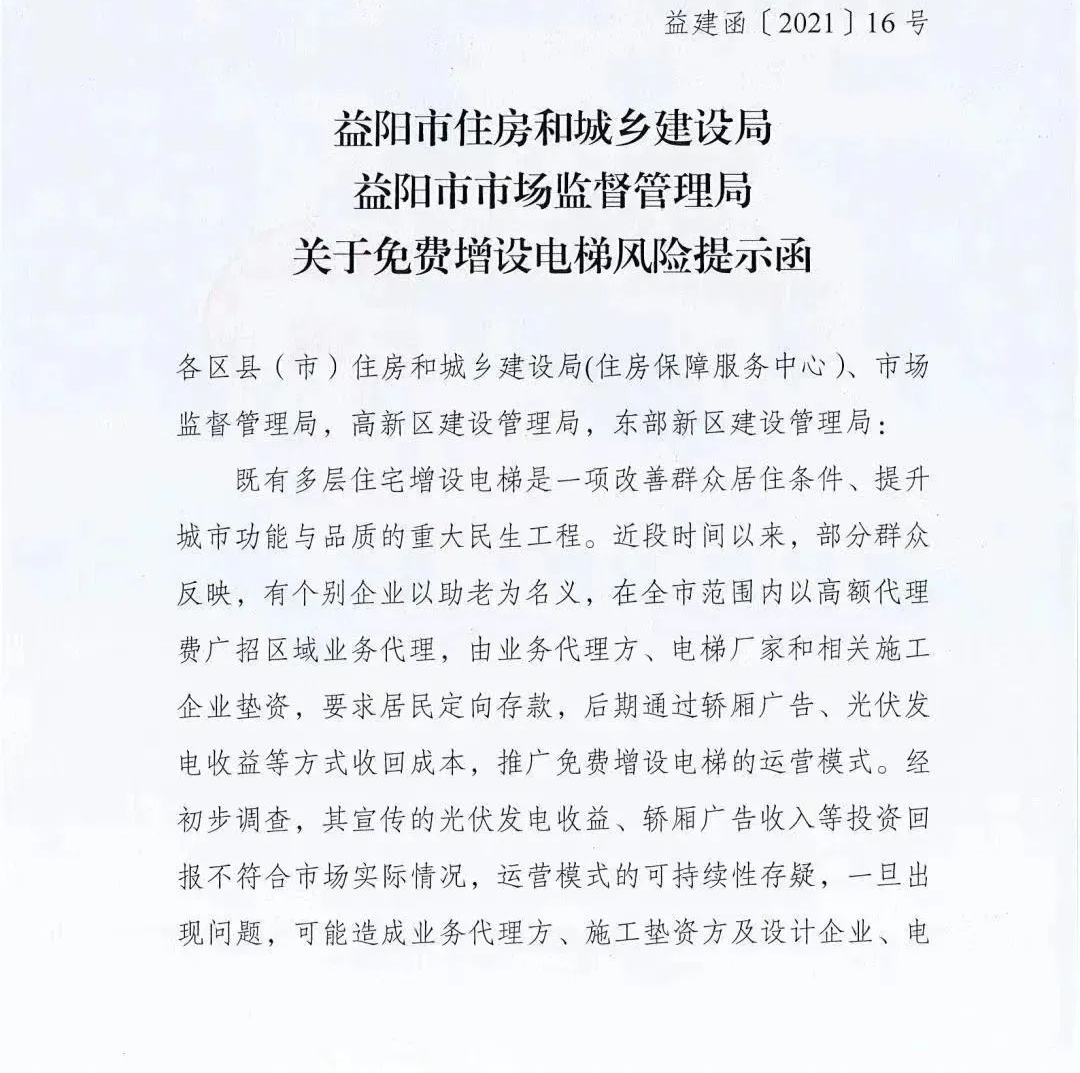 此前,已有多地发文要求做好譬如写字楼加设升降机过程中免费加设升降机风险提示函。