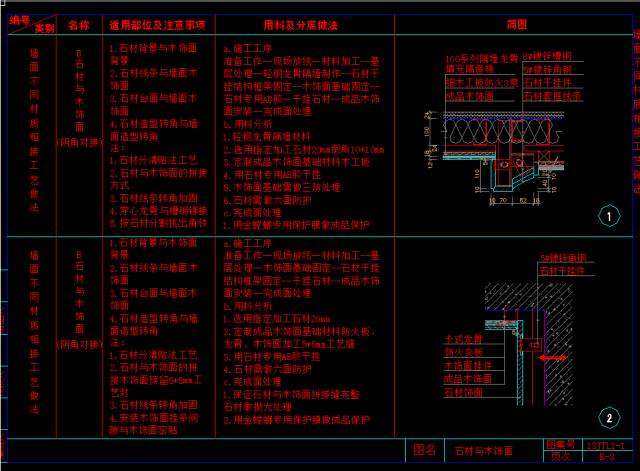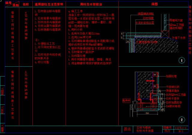 外墙结点包涵:(石料与石板、石料与木瓷砖、石料与单排、石料与硬包、异型石料作法、石料与钢制、石料与霍乱板、石料与瓷砖、石板与木瓷砖;石板与瓷砖、木瓷砖与霍乱板、石板与钢制、木瓷砖与钢制、木瓷砖与整套包、木瓷砖与瓷砖、瓷砖与霍乱板、整套万萨县钢制、霍乱板与钢制、整套万萨县瓷砖、瓷砖与钢制 、整套万萨县瓷砖 、陶瓷器镶嵌画(钢筋墙)、石料暗门、浴室石料工艺技术作法、陶瓷器镶嵌画天井工艺技术作法、石料天井工艺技术作法(横剖、竖剖)、霍乱板窗户与外墙相连接工艺技术作法、石料与钢筋墙相连接(竖剖、横剖)、霍乱板护栏升降机工艺技术作法、艺术霍乱板与外墙、天井相连接工艺技术作法、外墙木瓷砖作法、外墙木瓷砖作法、外墙木瓷砖作法、单排类作法、硬包类作法、木门类作法、瓷砖类作法、钢制类作法)