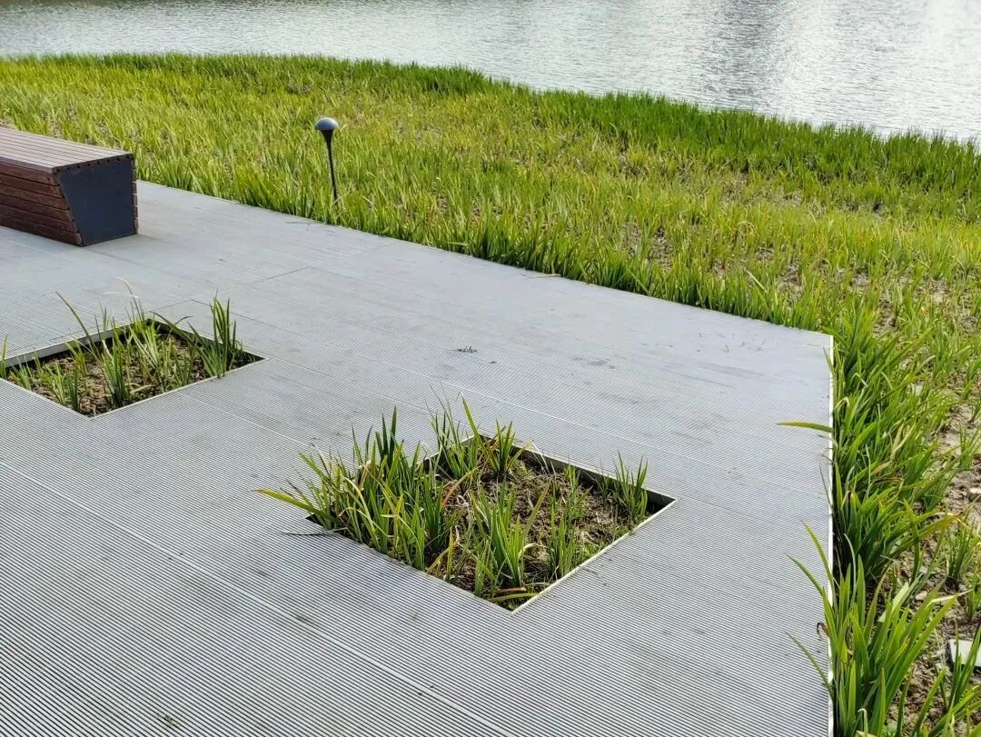 能看出,园内离水边更远的木材已经出现了破败的趋势,而离水边更近的I-BAR,除了表面有些许脏污,完全看不出有任何被侵蚀、腐烂的痕迹。