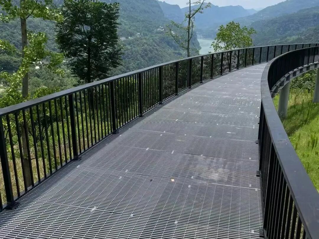 经过黑色防锈漆喷涂的I-BAR能在原本防腐性能的基础上更进一步,即使面对日夜不绝的滔滔江水也能长久使用而不腐烂锈蚀,给人带来满满的的安全感就在观景平台的不远处,还有一条同样由斯维致I-Bar打造的凌空跨越的小径,。