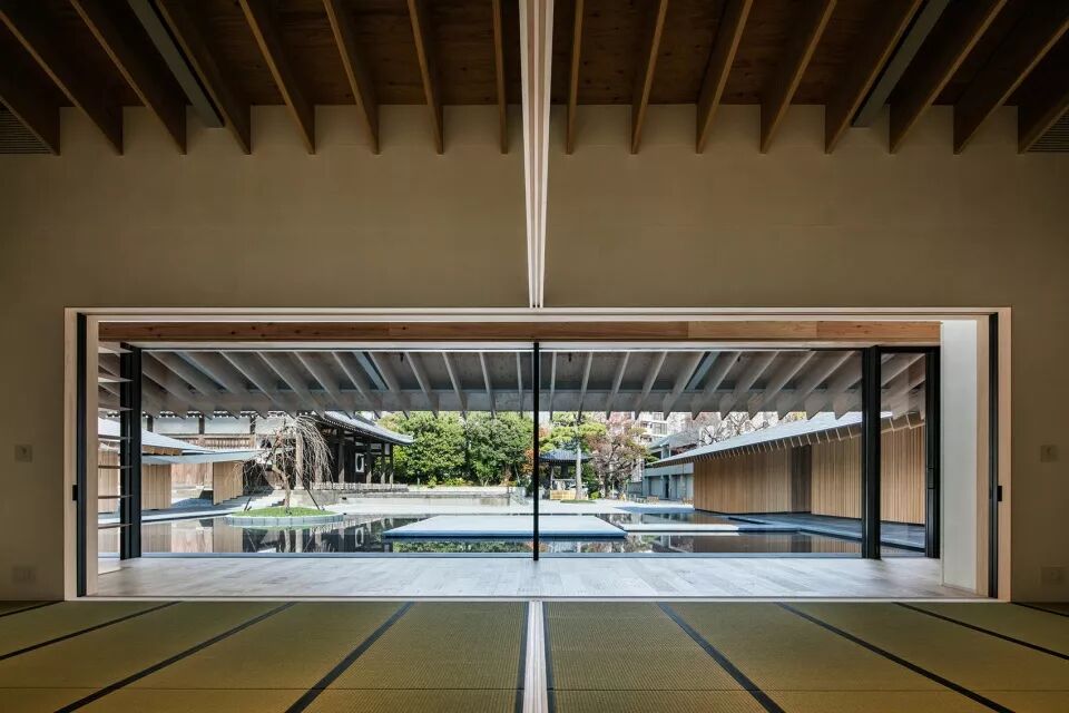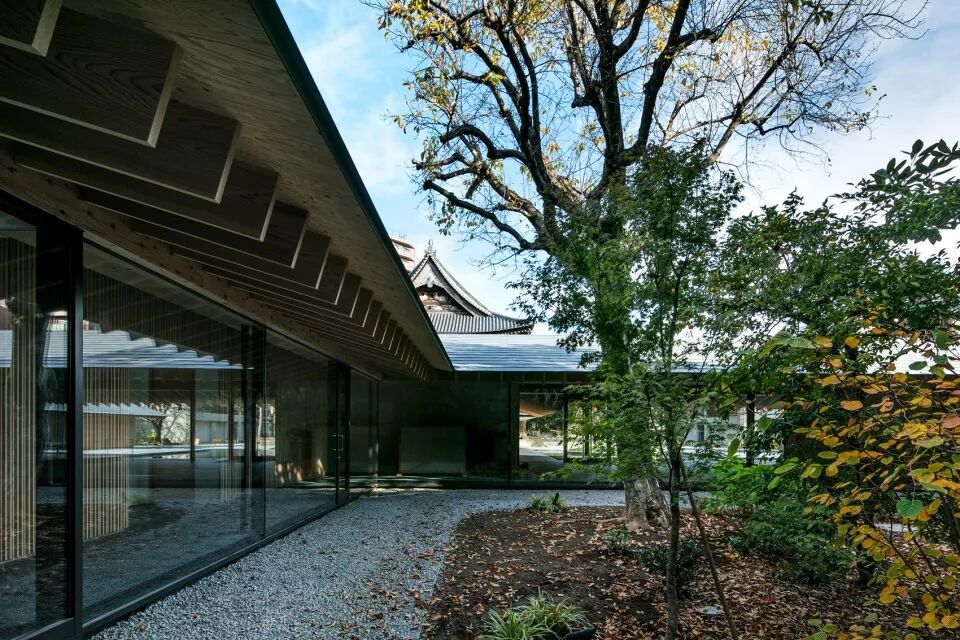 作为日本的重要物质文化遗产,建筑师着重关注了从寺庙的储藏室开始一直向前延伸的轴线为此,建筑师通过建筑设计手法,反映了中国寺庙的整体布局,并突出建筑的朝向和进深建筑师在寺庙轴线的南侧设置了一个U型的回廊和禅院,使其与周边社区的联系更加紧密。