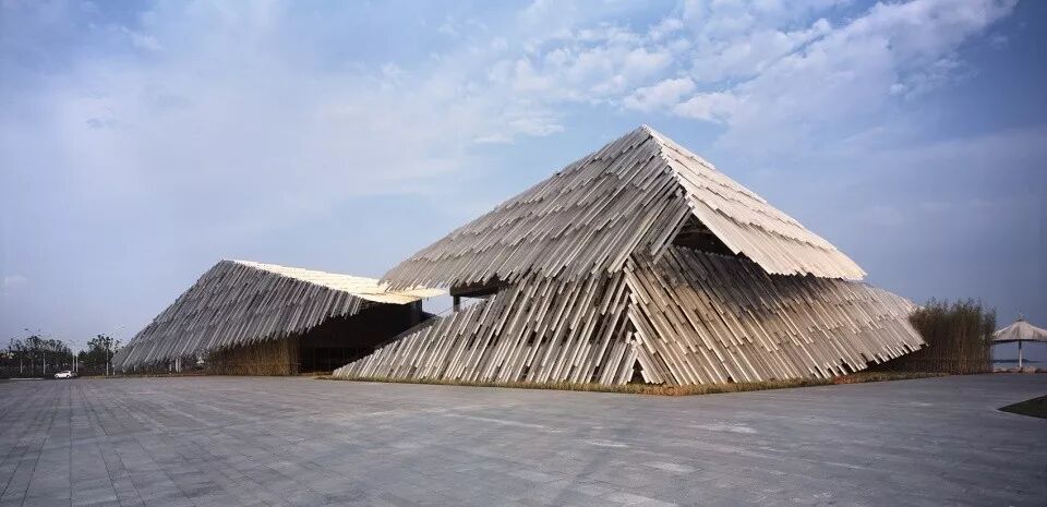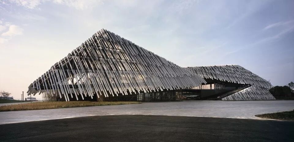 该项目位于苏州相城区,是阳澄湖的港口码头和游客集散中心设计的目标是通过对尺寸相同的挤压铝材部件的随机放置,来构建一个巨大的、形似山丘的地貌形态结构这座游客集散中心以及供船只停泊的码头集散中心的两个三角形屋顶向湖面展开,形成一个“八“字型,有中国流行的繁荣吉祥之寓意。
