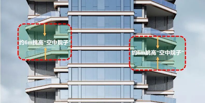 ▲碧桂园•北岛|约6m挑高“空中院子” 示意图转角空中庭院面积也不小,有约20多平米,最宽处长度约8米。此外,对于院子私密性来说,院子的顶上对应的都是实墙,从楼上看不到楼下。