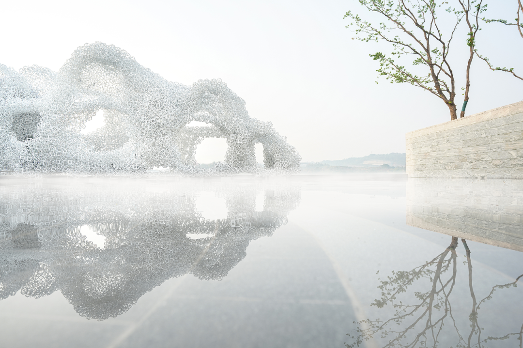 ▲园林实景图整个云尚江来工程项目都呈现出强烈的浪漫主义和表演艺术气质其中最具标示性的就是River Cloud,来自获得过德国城市结构设计红点奖的空间表演艺术大师蔡上仿佛一朵漂浮在江岸边的云,在水和烟的映衬下,有一种空灵的禅意。