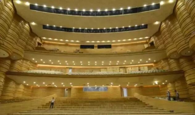 4. 观众厅内墙木饰面错落有致,弧段尺寸精确,间距均匀,拼接处严丝合缝。满足建筑物声学设计要求,处于亚洲地区领先水平。