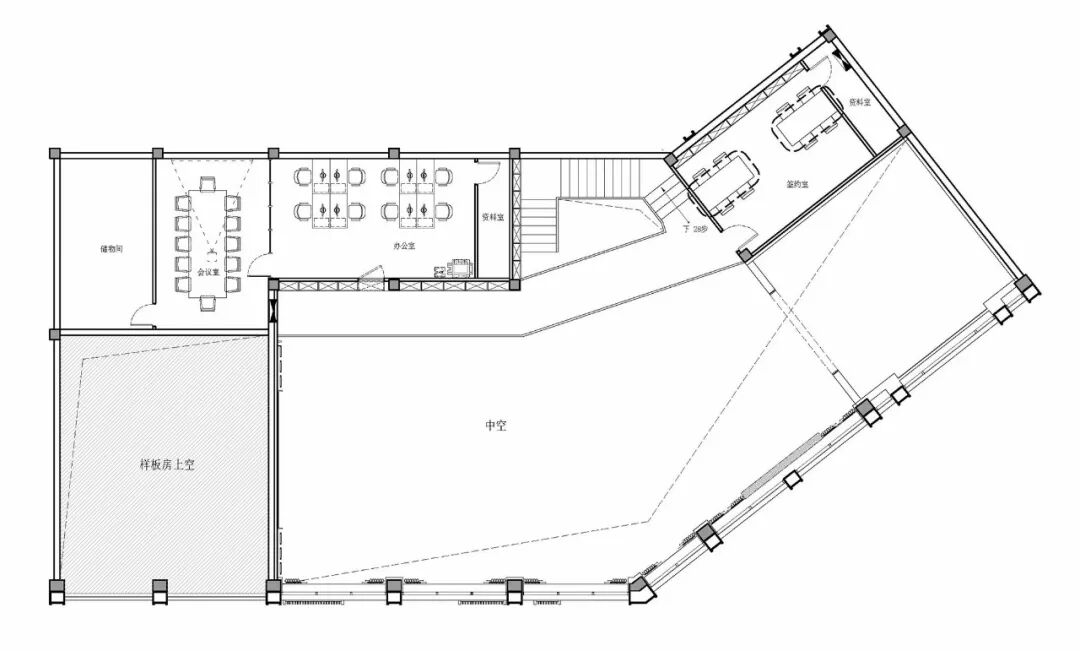 ▲克莱尔堡苏州象安北产品销售中-二层平面 项目名称:克莱尔堡江苏·苏州象安北产品销售服务中心 结构设计单位:朗昇结构设计 项目类型:产品销售服务中心 主创结构设计:袁静、钟建福、杨镇武 项目地址:中国·江苏 项目面积:620㎡ 主要用材:石材漆、木方、蓝紫色地板、石料、冲孔砖块、黑钢、铝前大灯等