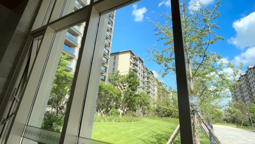 楼体大量运用玻璃+金属板,所有窗户,包括大阳台都是金属板包边,晴天细看,蓝天白云都被拽到你家窗户上,可真是太漂亮了!