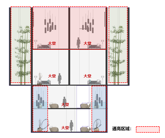 △ 地库地下大堂前区为解决常规地下大堂净高比较低,空间比较压抑的缺点,旭辉在产品的“爱自由”上也倾注了心血;在地下负一到一层,负三层和负二层的位置设置通高的挑空地区,类酒店大堂结构设计让自然采光与空间高低变化更随心自由,让客户归家的心情得以舒展,以更乐观快乐的心态面对自己的家人。