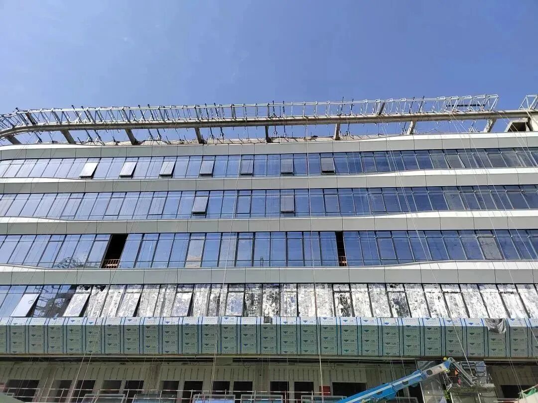 现阶段该工程建设项目尖塔、玻璃已加装顺利完成,层间铝板17-21层加装顺利完成,开启扇16-21层加装顺利完成,裙楼铝板大面积加装顺利完成,预计今年4年底竣工。