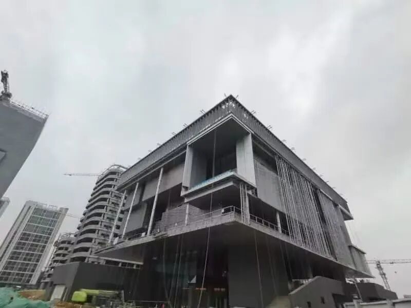 现阶段工程建设项目外墙248根钢制装饰柱预计今年4年底顺利完成;6楼屋面格栅5年底顺利完成;外墙窗口铝单板及穿孔铝单板包括打胶清洁4月中旬顺利完成;1-2层石材已顺利完成,2层外墙已顺利完成;光电玻璃预计今年4年底顺利完成。