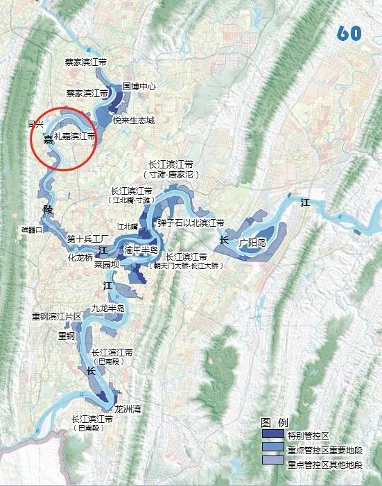 两江四岸规划图来源:重庆规划相关部门金海湾森林公园群,沿嘉陵江而建,在两江新区境内由南向北自大竹林至礼嘉呈带状分布,面积约5000亩对比其他几大“绿肺”,照母山森林森林公园约4300亩,中央森林公园约2300亩,园博园约3300亩,未来它的城市影响力可见一斑。