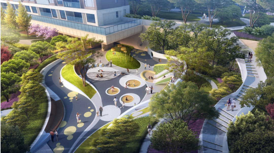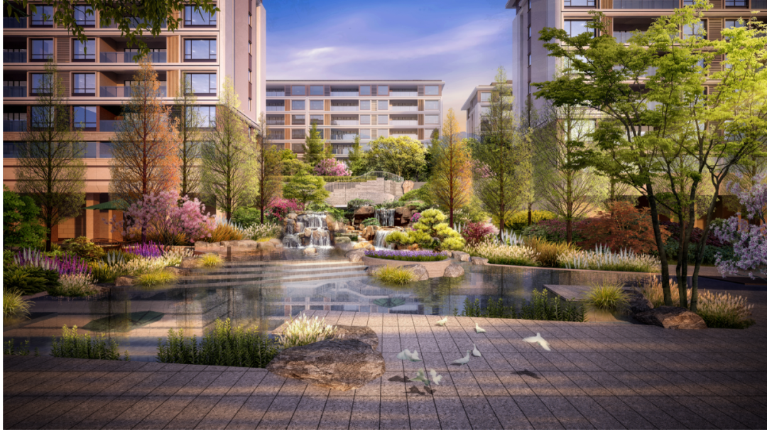 我无意重复12个景观节点的名字,反正说了你也记不住,直奔重点提炼关键词:立体森林公园、小森林、小瀑布,就是百望森林公园的缩小中庭版。调性一致,意境一致,带给人的生活气氛一致。