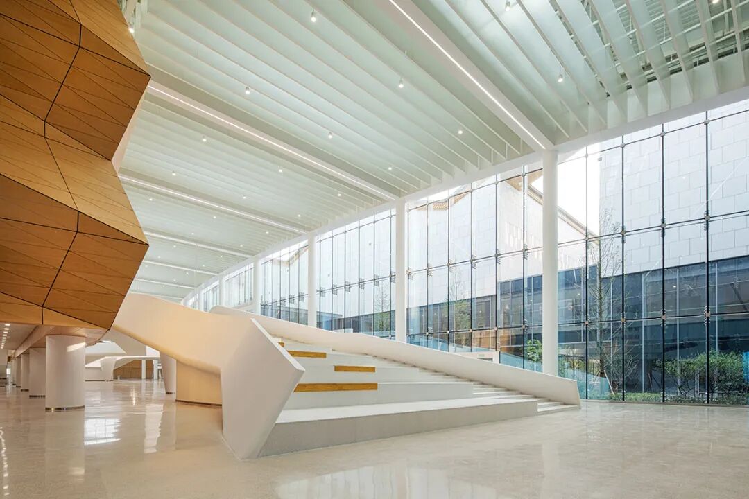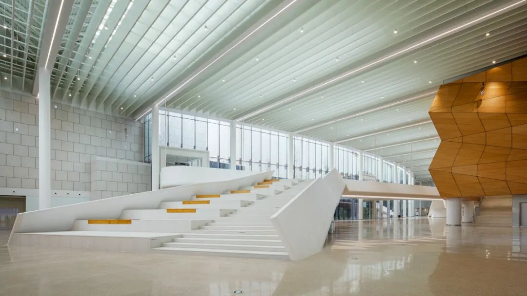 回廊区面积6400m²,平均高度在17m之上,斜坡回廊将各个场地连接起来,形成“漫步式”的体验空间,这里是人民广场的核心地带,也是所有工程施工单位材料运输、人员进出的必经之地,体量巨大、工期紧张,如何在十几家单位交叉工程施工的情况下保质保量按时完工,是本项目的重点。