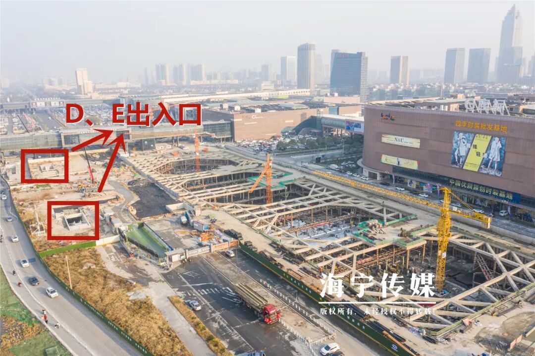 △皮革城站小编也去现场转了转,位于海州路北侧的D、E两个出入口主体结构已经全数顺利完成。出入口的中间为楼梯,两侧会安装电梯,方便人们上下通行。