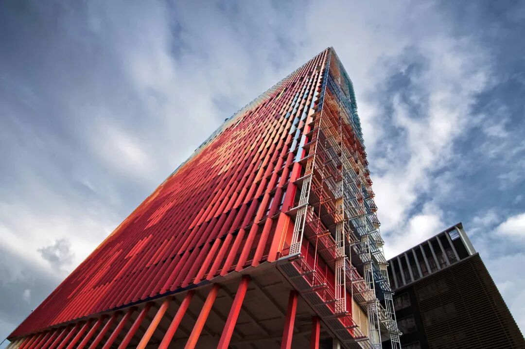 © Stéphane ABOUDARAM | WE ARE CONTENT(S)让•努维尔被誉为建筑物行业的电影导演,他的一个设计风格就是希望通过金属材料的利用来表现建筑物物无形的透明和轻盈的效用这栋大楼外墙表皮的设计以法国国旗的颜色红、白、蓝为主调。