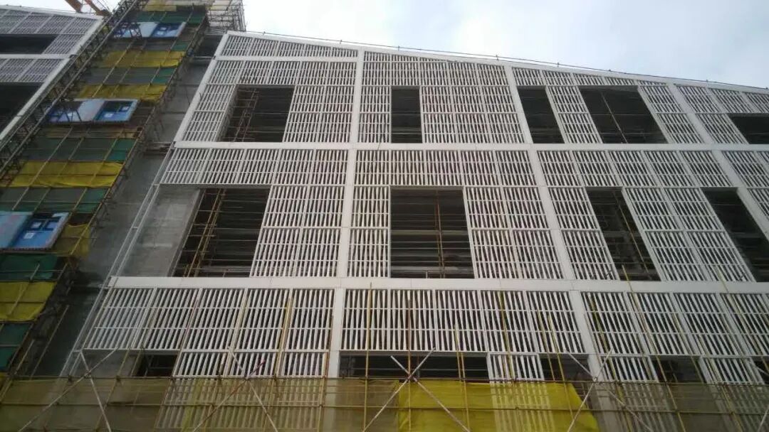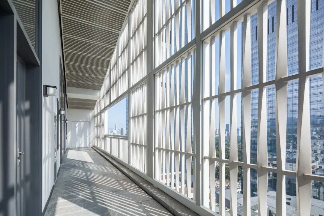 构架有着很好的遮阳作用,避免了阳光直射进办公室造成光污染,更有着节省能耗的作用