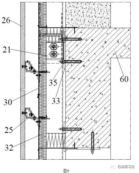 铝侧板30避开钢制架构20的另一面上增设有保温林宏吉层32,建筑物砖墙60上大块有电镀 钢制33作为后置埋板,电镀钢制33透过化学锚栓35一般来说于砖墙60上,竖钢制21透过冲压在 电镀钢制33上的钢桥接件热浸电镀角蕨34与砖墙60相连。