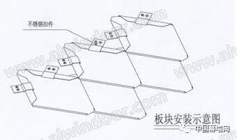 图3.3.4平锁扣金属板的安装示意图 四、 平锁扣金属板在本工程中的应用 本工程采用有金属光泽,抗氧化性好的铝镁锰合金板作为金属幕墙面材应用的平锁扣金属板主要有以下三个体系: 4.1原建建筑墙面上梁柱之间的方形平锁扣金属板。