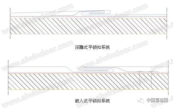 平锁扣系统金属板块四边采用简单的折边互相咬合,使用隐蔽式的扣件和螺丝安装,不同方式的板型排布,能够表达出不同的美学形式.平锁扣系统分为浮雕式和嵌入式两种加工形式平锁扣金属板按其形状又包括方形和菱形两种。