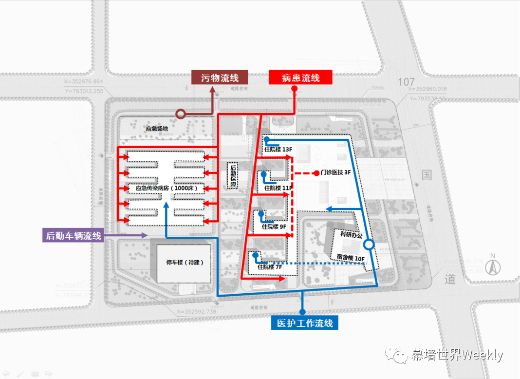 由于BIM在幕墙生命周期中全面贯彻,才确保能在6个多月的时间完成体量如此巨大的工程上图中的病房,就是传说中的负压病房(还没完成功能性装修);另外,原本设计在门诊医技楼上的直升机停机坪,也挪到了北侧的草坪上(见下图)。