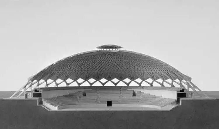 03 钢筋 稍稍把感有收回来一些,还是选用现代材料吧。假如主体内部结构都是钢筋,那么设计一个钢筋圆顶是不是样?第一个跳入脑海的是奈尔维的拜占庭小体育宫。