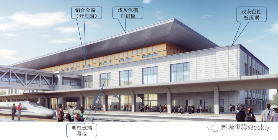 二、隐蔽——所有铝板檐口设置滴水构造(引水之“滴水线”) 为保证外立面效果,避免铝板表面雨水污染,在庐江西站、桐城东站、桐城南站所有铝板幕墙檐口部位均设置了滴水线构造。