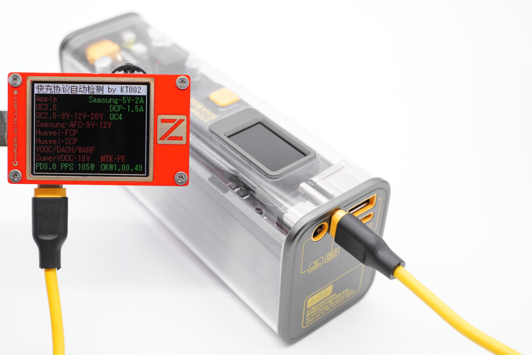 使用POWER-Z KT002读取USB-C1的快充协议,实测支持PD、PPS、QC4快充协议。
