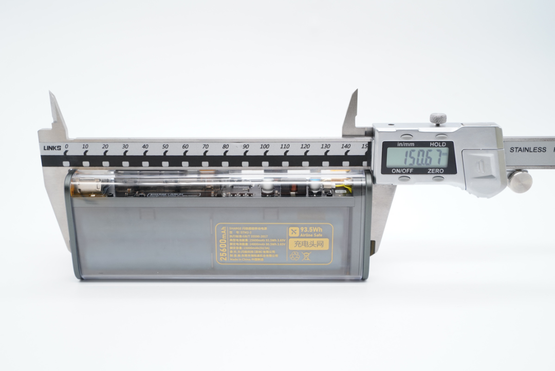 使用卡尺实测SHARGE闪极DT终端控制器的长度约为150.6mm。