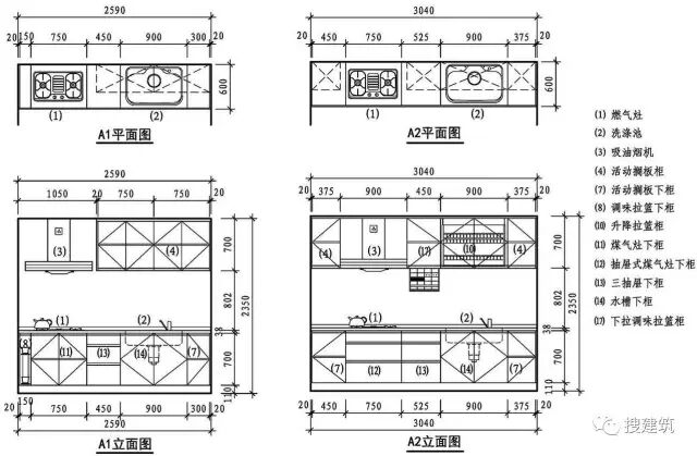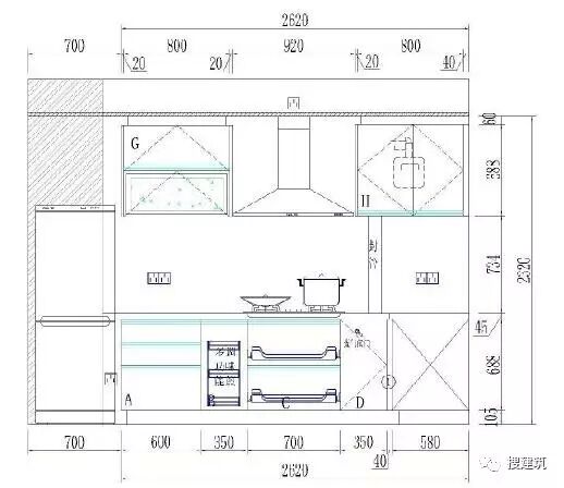 1、橱柜布置应遵循洗、切、炒的流线,以间距800为宜,炉灶应避开窗口增设,并考虑两人同时操作可能,橱柜进深小于560,长度在2000-3000之间吊柜进深350,由钦博不小于500电气插座应避免靠近水盆、灶具,并紧密结合家具布置。