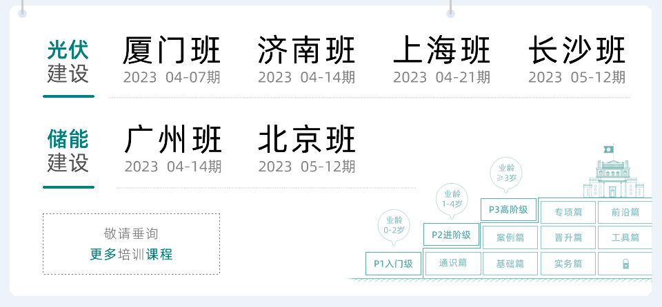 风电·储能培训【全国巡讲·每月多期丨服务产业·传播新知】·04-07 (厦门班)风电电站工程建设 【点此报名】·04-14 (济南班)风电电站工程建设 【点此报名】·04-14 (广州班)储能电站工程建设 【点此报名】