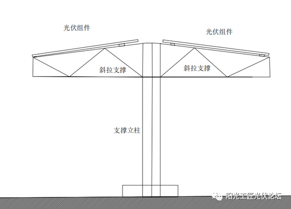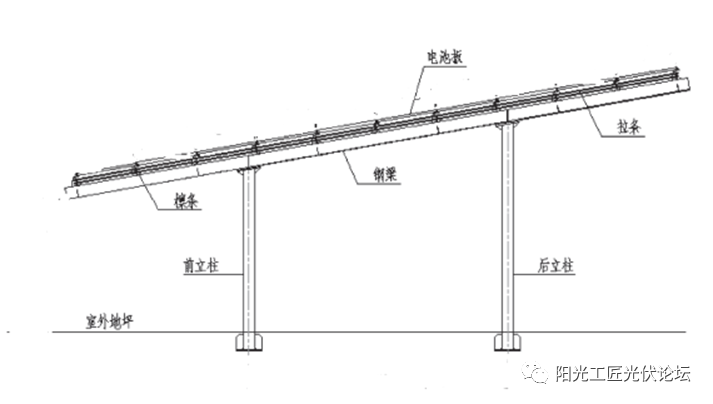 单停放位风电铁栏杆在结构上内部结构通常分成俩种分别为图1中的单支撑力横梁内部结构在结构上,图2中的双支撑力支撑点内部结构在结构上;此方案直接选用太阳能电池板作为其外立面系统,太阳能电池板连接通过碳纤维压块方式固定,1块太阳能电池板通常选用4个压块。