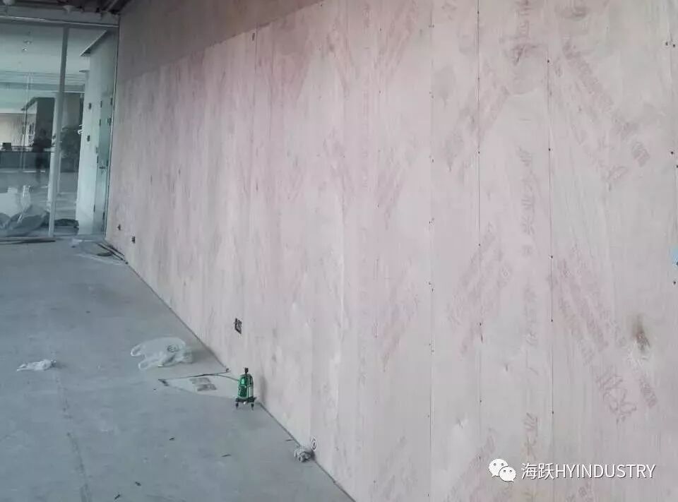 比方说,那个背景墙的最后呈现出面积是差不多50平米,最后采用的是比标准板稍微小一点的冲孔板拼接而成。