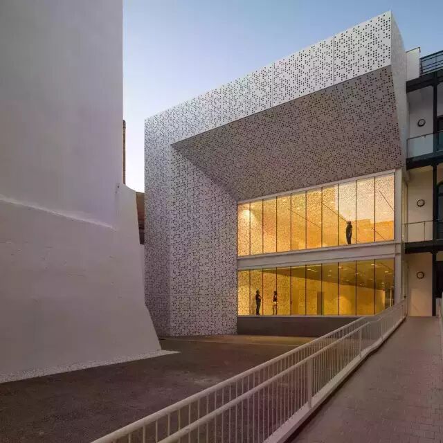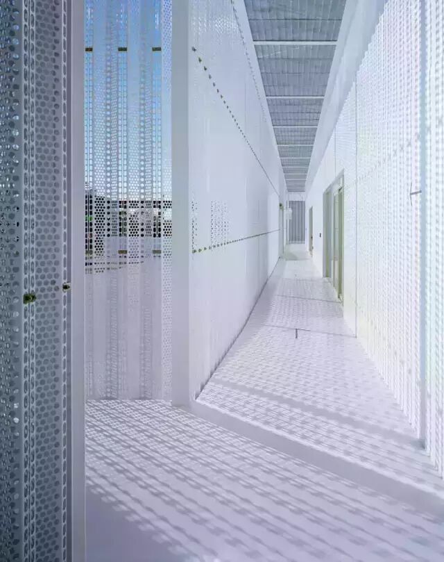 比利时·松兹瓦尔最西方酒店的外廊——The Common Office结构设计松兹瓦尔1900年代传统的城市风光就是古典主义建筑物外廊边界表达了建筑物的过去与现代,冲孔铝板就像给外廊披上了一块绸缎,类似于锦缎因为一天中不同时刻的光照,建筑物也跟着变化了。