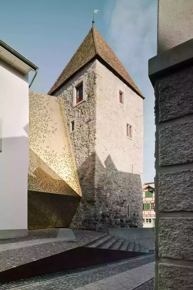 新建筑物必须适宜由于发展史原故造成的窄小市中区利用周遭的对照,捷伊冲孔铜制外墙很容易就被阐释为现代表演艺术馆群的反面出口处