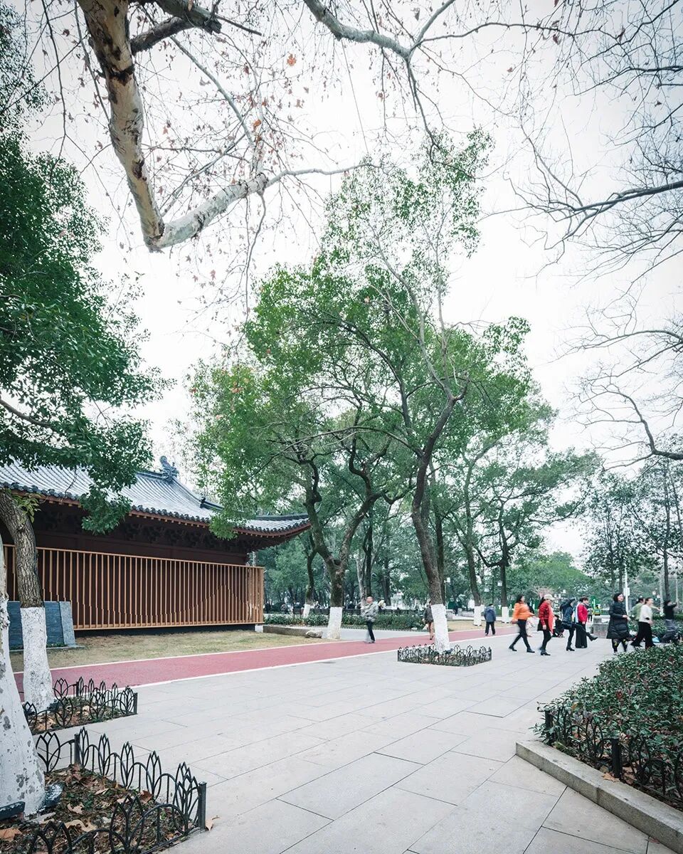 通过后期实地考察辨认出,现状尽管墙面、木门损坏严重,但原建筑物形貌、风格仍然极为吻合场馆气氛▼北侧森林公园出口处中心广场 ©聚润