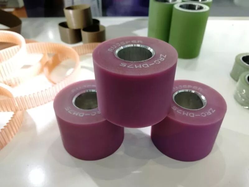 中瑞聚氨酯:携手青岛金汇丰共推行业绿色发展本届展会上,中瑞聚氨酯(展位号:H2C17)展示了多款聚氨酯产品:聚氨酯粗纱胶辊稳定性好,吸振性极佳,对温湿度波动控制力强,回磨周期长;聚氨酯胶圈伸缩变形少,表面弹性高,握持力恒定,抗龟裂老化性优,使用寿命长;聚氨酯齿形带不易变形,耐油不溶胀,吸振性好,运转传动平稳,高耐磨延长使用周期;聚氨酯粗纱假捻器合理的结构,优良的性能,有效增加纺纱段假捻度,缩小纺纱三角区,减少意外伸长,提高粗纱条干均匀度。
