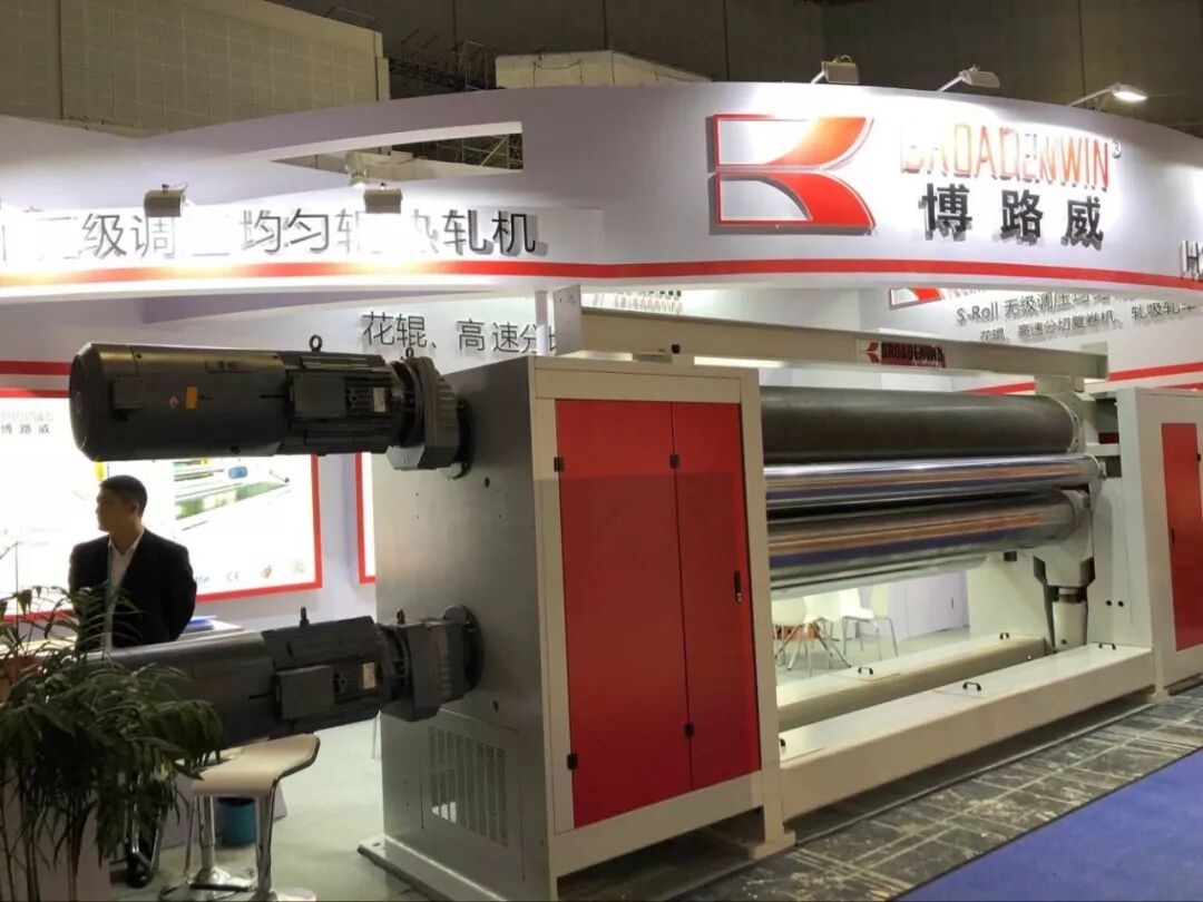 该设备的链车锭数为51锭,链车数为8列,纱库轨道为8条,该设备由程序控制,实现粗纱从多台粗纱机到多台细纱机的多品种运输博路威:轧光机大幅提升产品光泽度在本届展会上,博路威机械江苏有限公司(展位号:H2A22、H5D15)重点展示了S-ROLL无级调压均匀辊热轧机、Y型BENDCON分区可控中高轧光机。