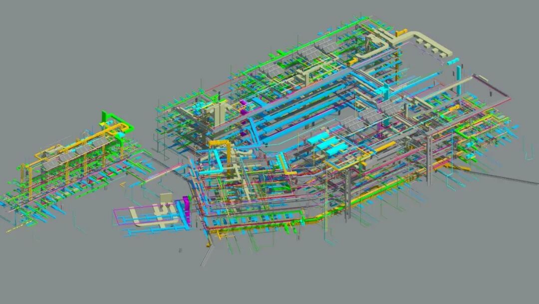 BIM建模项目团队匠心为本,注重细节把控,最终确保了铜条幕墙每个弧度都与结构严丝合缝,整体抛物线优美流畅巧妙运用,BIM技术让管线不再“纠缠不清”本工程建设涉及医疗专项工程建设多,各项医疗设备管线错综复杂,为工程建设的机电安装施工带来了不小的挑战。