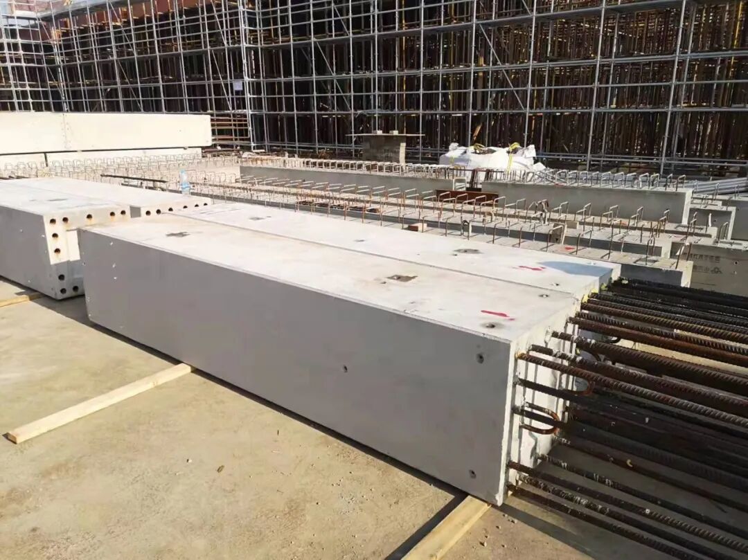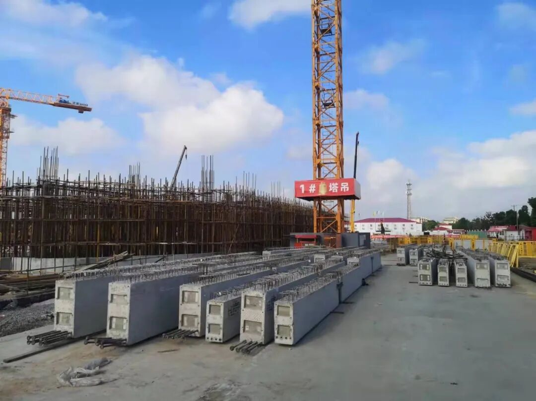 合理规划,确保大体量PC构件施工井然有序本工程建设有4栋单体为PC结构,分别为行政楼、医技楼、妇科楼和产科楼,其中预制构件为预制柱、预制梁、叠合板和预制楼梯等,最大PC构件重量高达7.65吨同步施工单体较多,上部楼栋施工紧跟分区推进,施工工作面广。