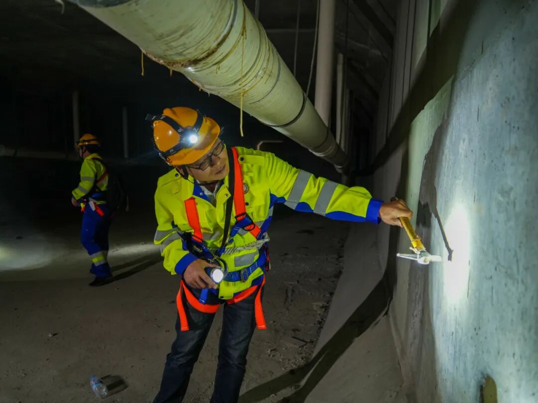 “‘敲、看、听’是判断虫害的重要手段,敲打Baramula响声就是有裂缝,如果是悦耳的,就代表安全可靠”车翰边敲边说,随后又挪着身体用塞尺检查和缝隙宽度夏天还未到,傣族已经“热情”了起来,豆大的雨点不断从他脸上跌落墩顶到地面约十来米,夜间高空工作台,明显增添了检查和的难度,车翰解释说:“白天车多,限速又快,桥上工作台很不安全可靠,所以都是晚上工作台。