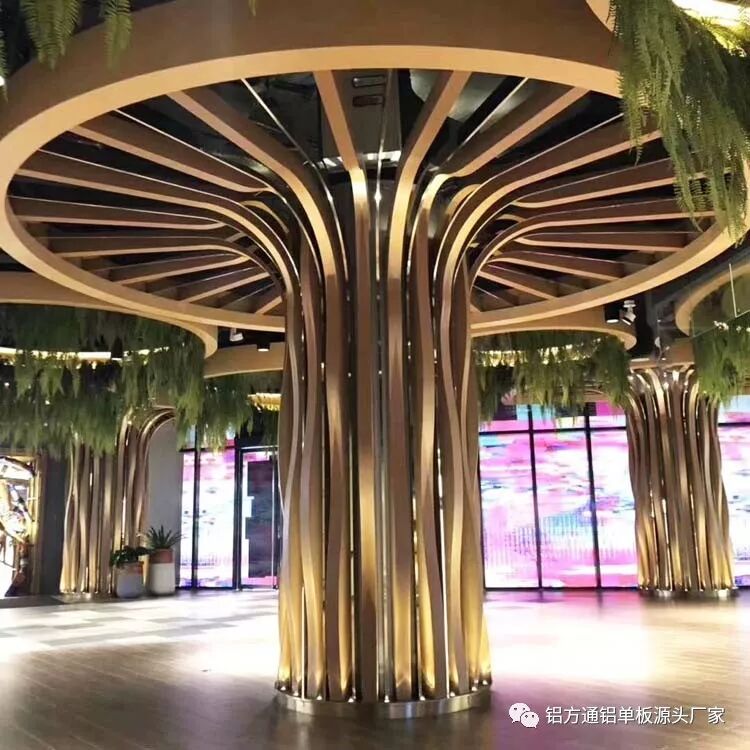 上图为常规铝方通参数及示例,下图为铝树造型铝方通示例
