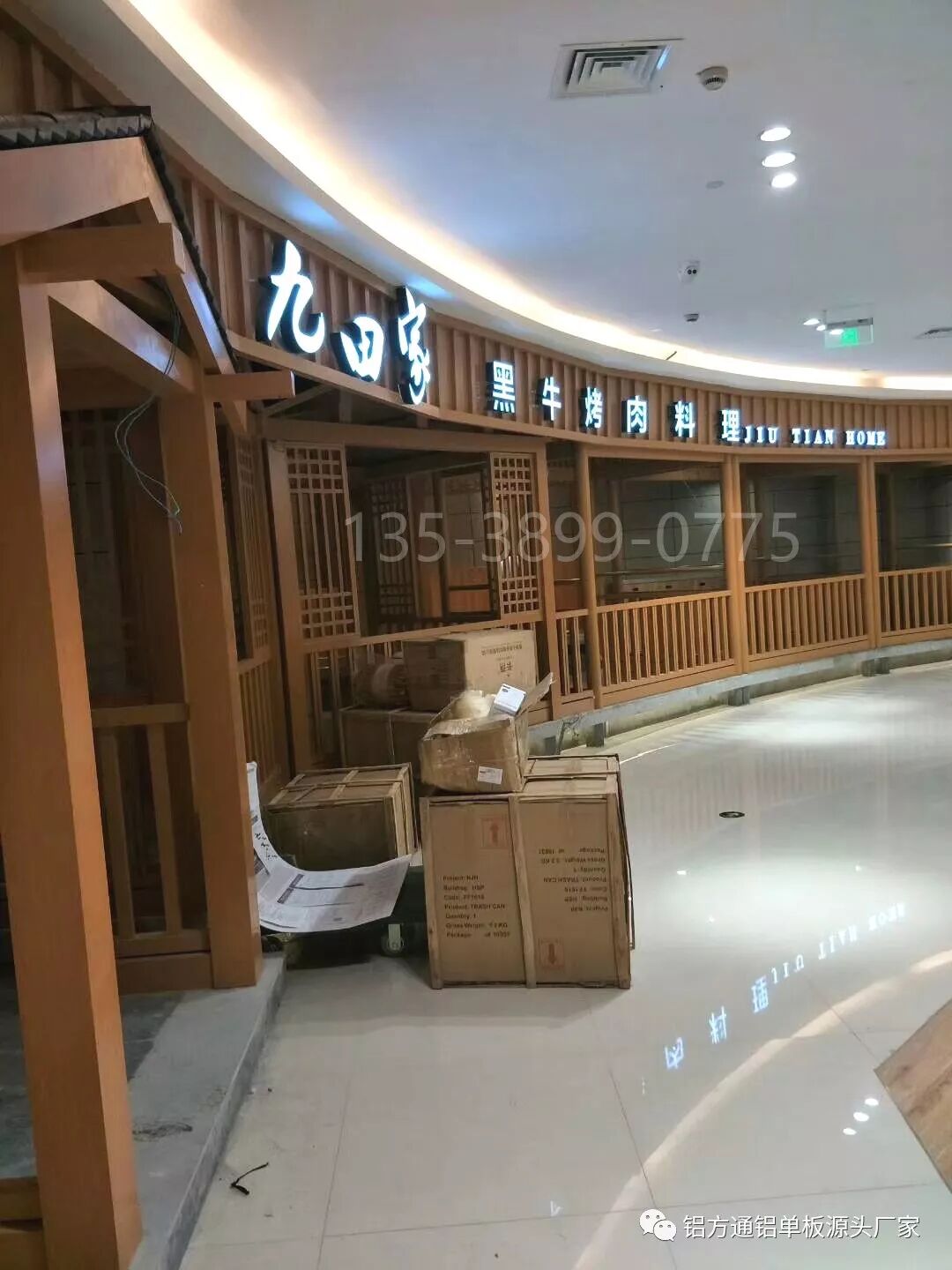 火锅城仿古SCRM025花施工现场(材质是铝合金,表面是防火实木)