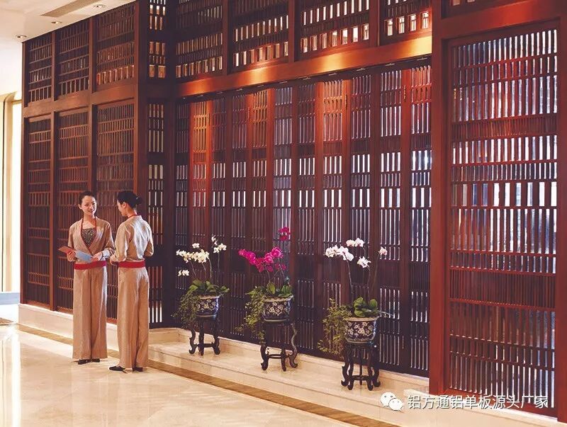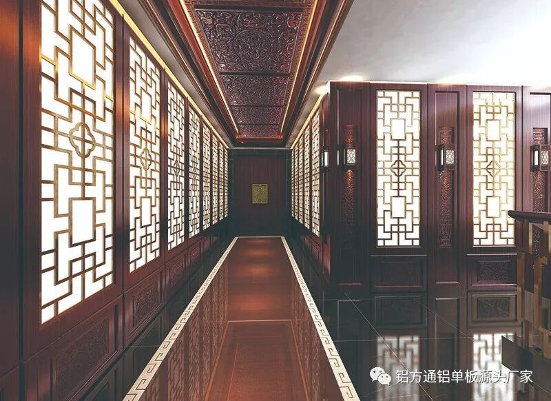 饭店走道复古SCRM025花(材质是铝合金,表面是防火实木+香槟金烤漆)