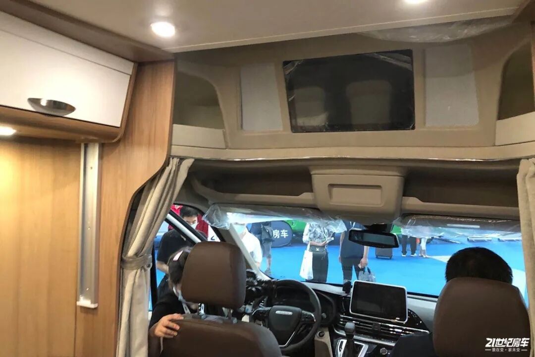 驾驶舱主副驾驶座椅还可向后旋转,方便与车内人员交流上方配有智能触屏电视;两边配有一定的储物空间;此外隐私帘可保证驾驶室区域的隐私性