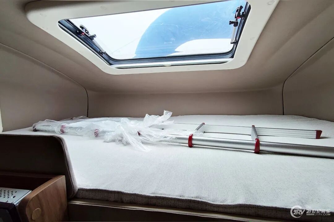 旅行家G20的升顶采用一键升降设计,可形成一张长2.1米,宽1.1米的上层床铺,最高有着90公分的最大顶部活动空间,升顶内配备有人性化的照明功能及USB口充电等丰富功能,更为适宜用户的日常生活习惯与需求。
