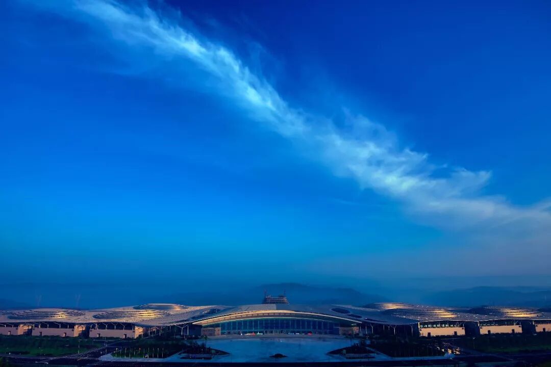 武汉博览服务中心位于刘坤一片区观音桥镇,乌江肖蒙区南北向长1500米占地占地130平方米是东部第一、全国第三大的多用途现代智能化场地照相机眺望下的武汉博览服务中心形如一只飞翔欲飞的蜻蜓