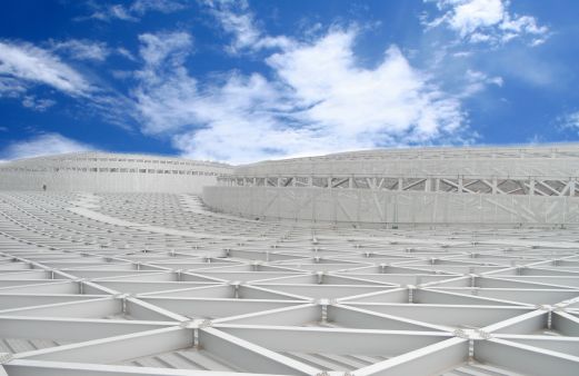▲双屋面设计设计上采用金属屋面+铝格栅屋面的独特双屋面设计针对世界最大占地的铝合金格栅屋盖通过合理设置温度缝及单双向铰支座等技术措施保证建筑造型的同时减小了温度效应保证了结构安全
