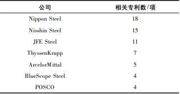 目前国内各大钢企也围绕自己的成分体系,通过添加稀土或者其它元素得到性能更好的镀层性能,并积极申报锌铝镁镀层的发明专利表4国际专利分布情况