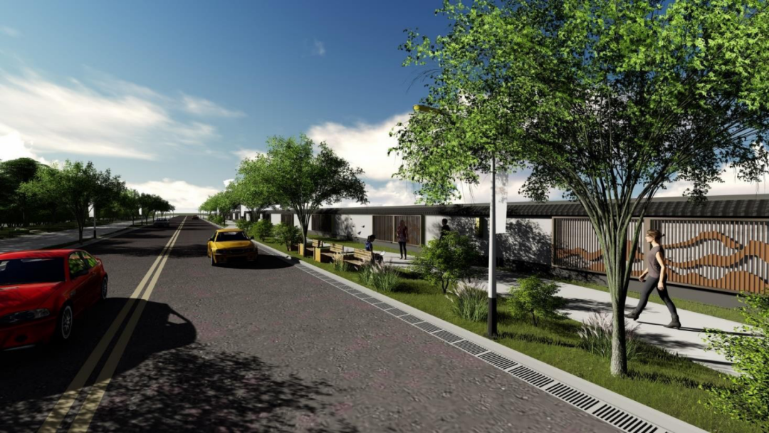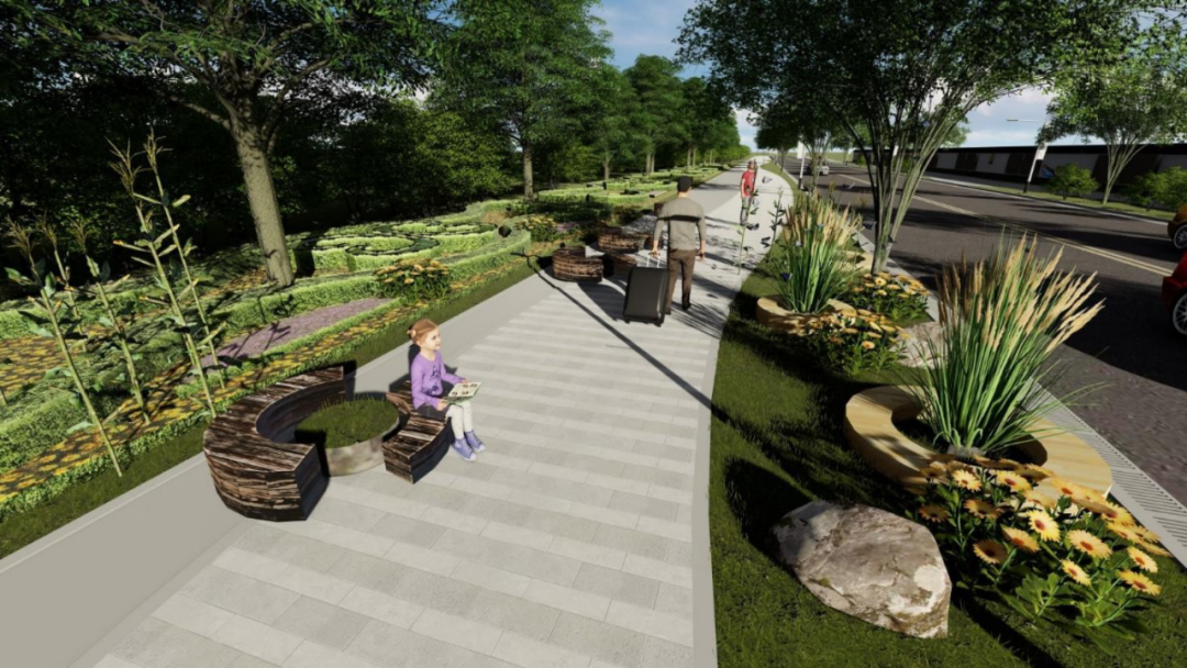 围墙效果图增加城市家具结合绿化布置自然景观小品、围墙以及中心广场自然景观。提升街区品质,增强居民幸福感。